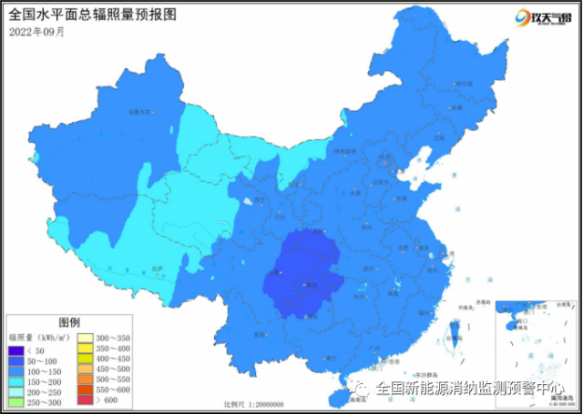 附圖6 全國2022年9月水平面總輻照量預(yù)報圖