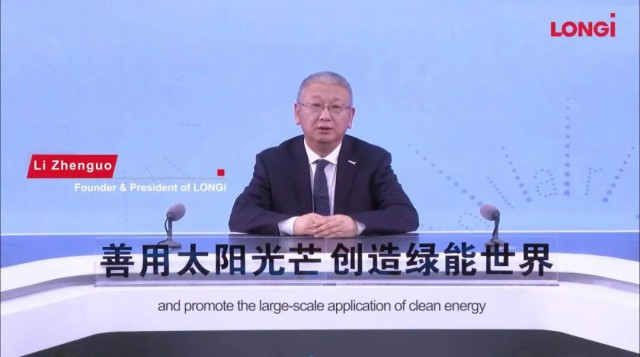■ 隆基綠能創(chuàng)始人、總裁李振國以視頻形式發(fā)表主題演講
