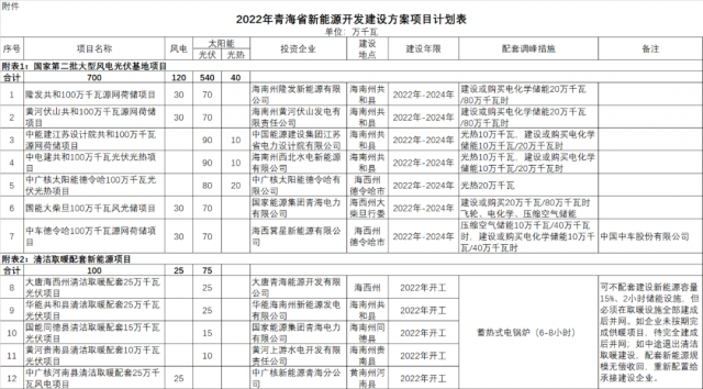 附件:2022年青海省新能源開發(fā)建設方案項目計劃表