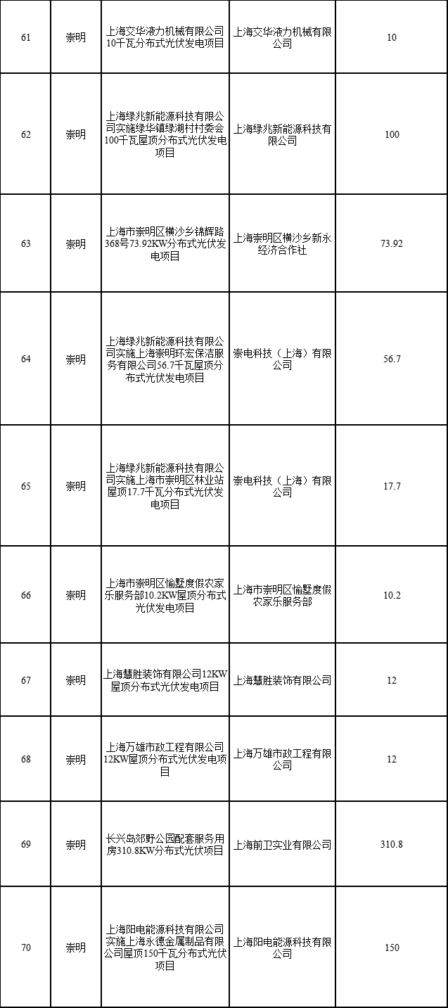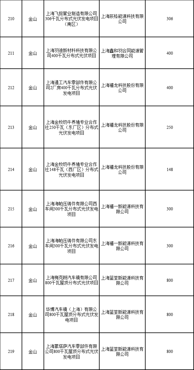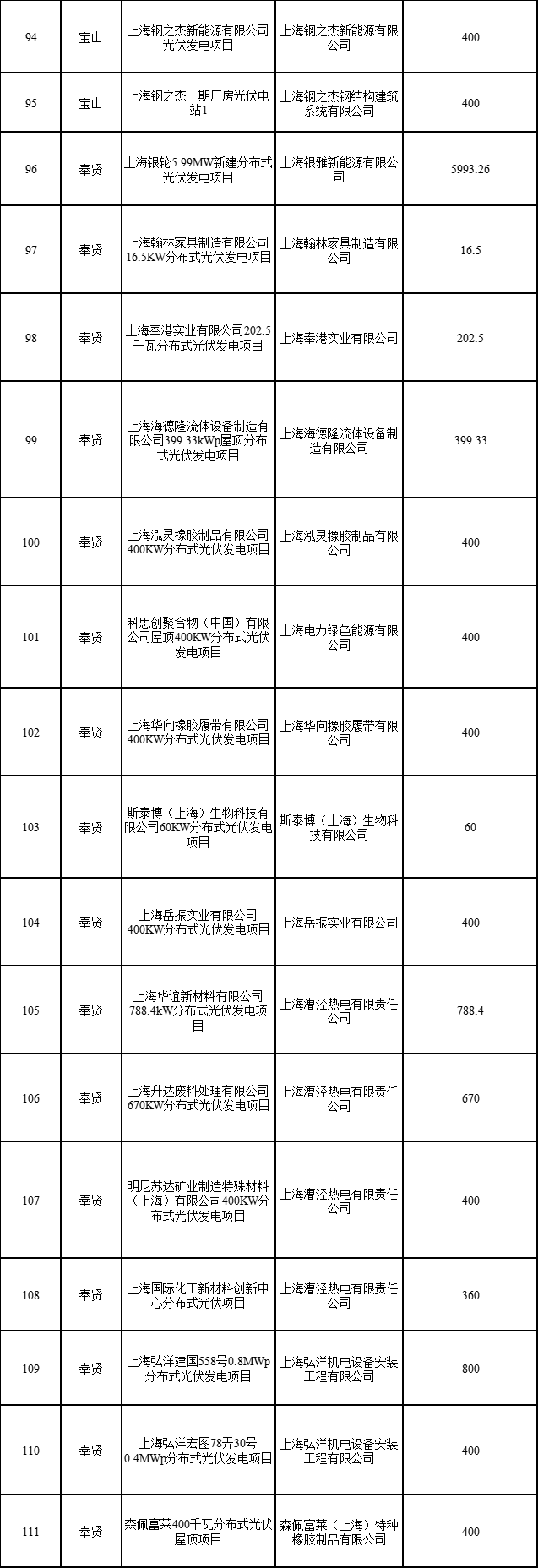 日前,上海市發(fā)展改革委公布2022年第二批可再生能源和新能源發(fā)展專(zhuān)項(xiàng)資金獎(jiǎng)勵(lì)目錄的通知,通知指出,共有1775個(gè)項(xiàng)目納入獎(jiǎng)勵(lì)目錄,總裝機(jī)容量249376.418千瓦。其中,海上風(fēng)電項(xiàng)目1個(gè)(合計(jì)45500千瓦)、光伏電站項(xiàng)目1個(gè)(3499.97)、企業(yè)分布式光伏項(xiàng)目315個(gè)(合計(jì)183784.37千瓦)、居民光伏項(xiàng)目1458個(gè)(合計(jì)16592.078千瓦)。
