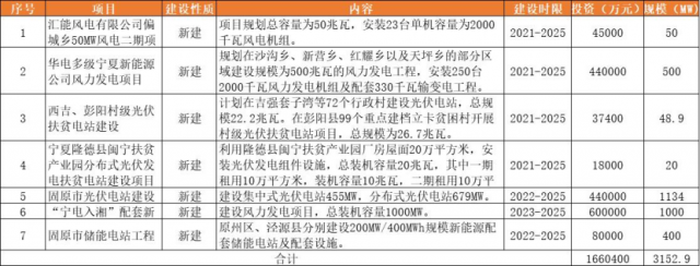 近期,固原市人民政府辦公室印發(fā)固原市自然資源保護(hù)和利用“十四五”規(guī)劃的通知。根據(jù)光伏們查詢,在固原市自然資源保護(hù)和利用“十四五”規(guī)劃建設(shè)項(xiàng)目庫中,有關(guān)清潔能源產(chǎn)業(yè)的項(xiàng)目共10個(gè)。其中包括光伏、風(fēng)電、儲(chǔ)能的項(xiàng)目共7個(gè),合計(jì)新能源新建規(guī)模3152.9MW,總投資金額166億元。具體項(xiàng)目名單如下: