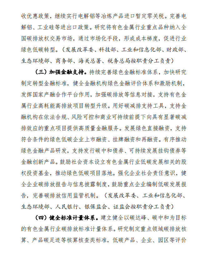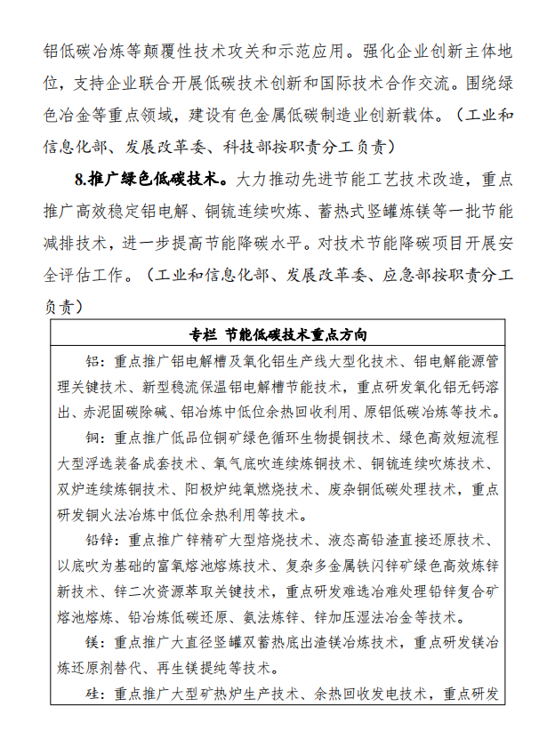 11月15日,工業(yè)和信息化部、國家發(fā)展和改革委員會(huì)和生態(tài)環(huán)境部發(fā)布《關(guān)于印發(fā)有色金屬行業(yè)碳達(dá)峰實(shí)施方案的通知》,(以下簡稱通知)通知指出,控制化石能源消費(fèi)。推進(jìn)有色金屬行業(yè)燃煤窯爐以電代煤,提升用能電氣化水平。在氣源有保障、氣價(jià)可承受的條件下有序推進(jìn)以氣代煤。推動(dòng)落后自備燃煤機(jī)組淘汰關(guān)?;虿捎们鍧嵢剂咸娲?。嚴(yán)禁在國家政策允許的領(lǐng)域以外新(擴(kuò))建燃煤自備電廠,推動(dòng)電解鋁行業(yè)從使用自備電向網(wǎng)電轉(zhuǎn)化。支持企業(yè)參與光伏、風(fēng)電等可再生能源和氫能、儲(chǔ)能系統(tǒng)開發(fā)建設(shè)。加強(qiáng)企業(yè)節(jié)能管理,嚴(yán)格落實(shí)國家強(qiáng)制性節(jié)能標(biāo)準(zhǔn),持續(xù)開展工業(yè)節(jié)能監(jiān)察,規(guī)范企業(yè)用能行為。