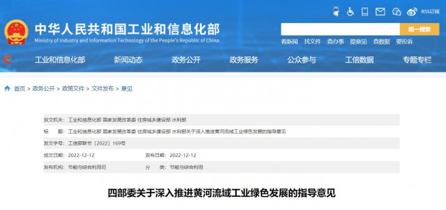 12月12日,工信部、國家發(fā)改委、住建部、水利部四部委發(fā)布《關(guān)于深入推進黃河流域工業(yè)綠色發(fā)展的指導(dǎo)意見》。