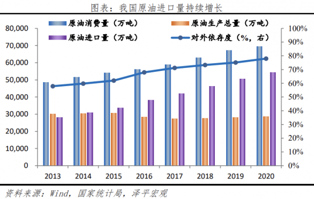 二是對(duì)國(guó)家能源安全的保障。在交通運(yùn)輸領(lǐng)域,我國(guó)石油消費(fèi)量正不斷走高,從2015年的5.43億噸/年上升至2020年的7.36億噸/年。然而我國(guó)原油產(chǎn)量則一直維持在2億噸/年。供需矛盾致使我國(guó)的原油進(jìn)口量持續(xù)增長(zhǎng),對(duì)外依存度超過70%。為保證國(guó)家的能源安全和經(jīng)濟(jì)的可持續(xù)發(fā)展,能源消費(fèi)結(jié)構(gòu)亟需升級(jí)。而發(fā)展新能源發(fā)電有利于減少我國(guó)對(duì)能源進(jìn)口的依賴,保障國(guó)家能源安全。