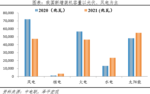 光伏是新能源發(fā)電端建設(shè)的核心領(lǐng)域之一,中電聯(lián)數(shù)據(jù)顯示,2021年我國(guó)太陽(yáng)能新增裝機(jī)容量為54930兆瓦,同比增長(zhǎng)14.0%,占新能源發(fā)電新增裝機(jī)總?cè)萘康?2%。