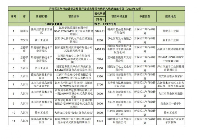 近日,江西省可再生能源信息中心發(fā)布了開發(fā)區(qū)三年行動(dòng)計(jì)劃及整縣開發(fā)試點(diǎn)屋頂光伏納入優(yōu)選清單。