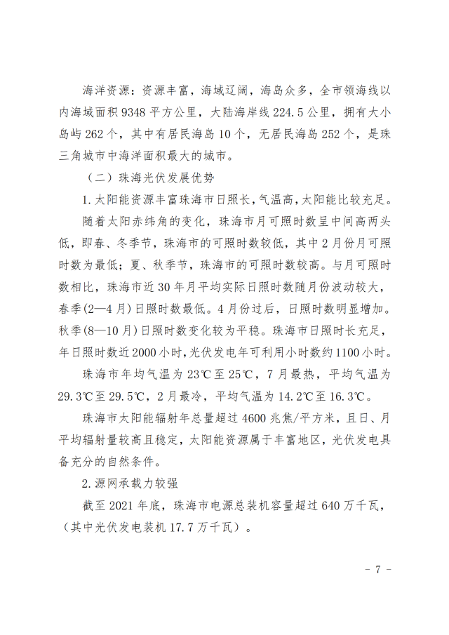 珠海市發(fā)展和改革局關(guān)于印發(fā)《珠海市光伏電力發(fā)展規(guī)劃(2022-2025年)》的通知