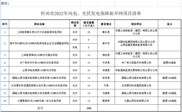 通知指出:2022年度山西省能源局共下達忻州市風(fēng)電、光伏發(fā)電項目共27個326萬千瓦,其中下達2022年度保障性并網(wǎng)項目9個105萬千瓦,下達支持新能源產(chǎn)業(yè)發(fā)展風(fēng)電、光伏發(fā)電建設(shè)項目18個221萬千瓦。