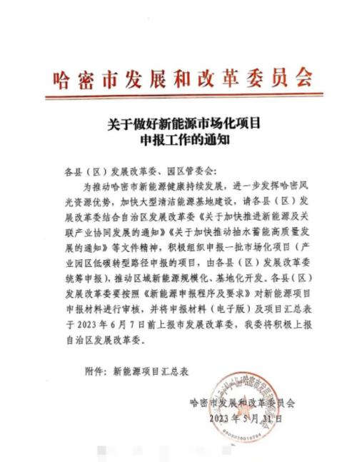 《通知》指出,為推動哈密市新能源健康持續(xù)發(fā)展,進(jìn)一步發(fā)揮哈密風(fēng)光資源優(yōu)勢,加快大型清潔能源基地建設(shè),請各縣(區(qū))發(fā)展改革委結(jié)合自治區(qū)發(fā)展改革委《關(guān)于加快推進(jìn)新能源及關(guān)聯(lián)產(chǎn)業(yè)協(xié)同發(fā)展的通知》《關(guān)于加快推動抽水蓄能高質(zhì)量發(fā)展的通知》等文件精神,積極組織申報一批市場化項目(產(chǎn)業(yè)園區(qū)低碳轉(zhuǎn)型路徑申報的項目,由各縣(區(qū))發(fā)展改革委統(tǒng)籌申報),推動區(qū)域新能源規(guī)?;⒒鼗_發(fā)。
