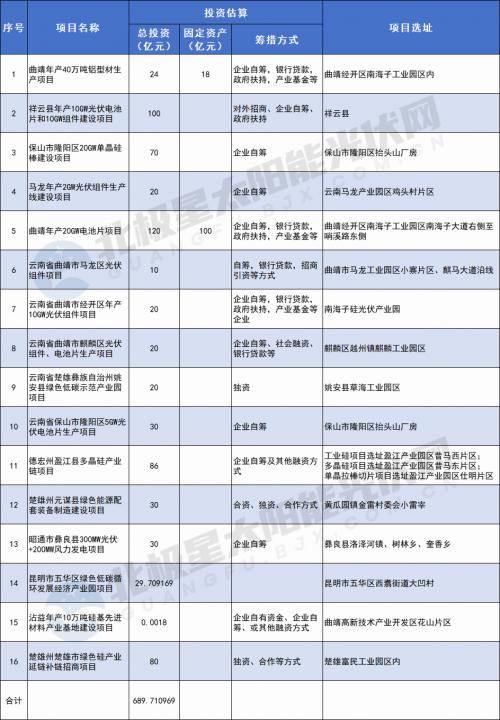建設(shè)內(nèi)容:項(xiàng)目根據(jù)云南馬龍產(chǎn)業(yè)園區(qū)雞頭村片區(qū)產(chǎn)業(yè)規(guī)劃,依托曲靖市綠色硅光伏產(chǎn)業(yè)發(fā)展基礎(chǔ),規(guī)劃建設(shè)光伏組件生產(chǎn)線、辦公區(qū)、生活區(qū)及配套設(shè)施。項(xiàng)目建成后,可承接曲靖市綠色硅光伏產(chǎn)業(yè)轉(zhuǎn)移,強(qiáng)化曲靖市綠色硅光伏產(chǎn)業(yè)鏈中游制造端,助力曲靖市打造綠色硅光伏全產(chǎn)業(yè)鏈,釋放曲靖光伏產(chǎn)業(yè)新動(dòng)能。吸引了晶澳、陽光、德方納米等一批行業(yè)龍頭企業(yè)落戶曲靖,投資建設(shè)了系列項(xiàng)目。其中,晶澳投資173億元連續(xù)布局建設(shè)4期項(xiàng)目、陽光能源投資39.5億元連續(xù)布局建設(shè)3期項(xiàng)目、德方納米投資300億元連續(xù)布局建設(shè)13期項(xiàng)目,有力推動(dòng)了綠色硅光伏、新能源電池產(chǎn)業(yè)全產(chǎn)業(yè)鏈集群發(fā)展。項(xiàng)目建成投產(chǎn)后,產(chǎn)能為2GW/年,按組件價(jià)格1.7元/瓦,可實(shí)現(xiàn)年?duì)I業(yè)額34億元,除去投資成本及設(shè)備折舊成本,一年內(nèi)可實(shí)現(xiàn)項(xiàng)目回本,預(yù)計(jì)每年可實(shí)現(xiàn)利稅5億元左右。