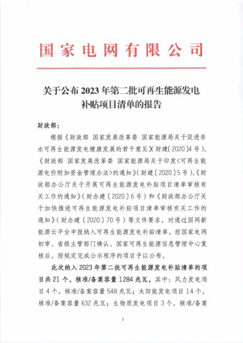 關(guān)于公布2023年第二批可再生能源發(fā)電補(bǔ)貼項(xiàng)目清單的報(bào)告