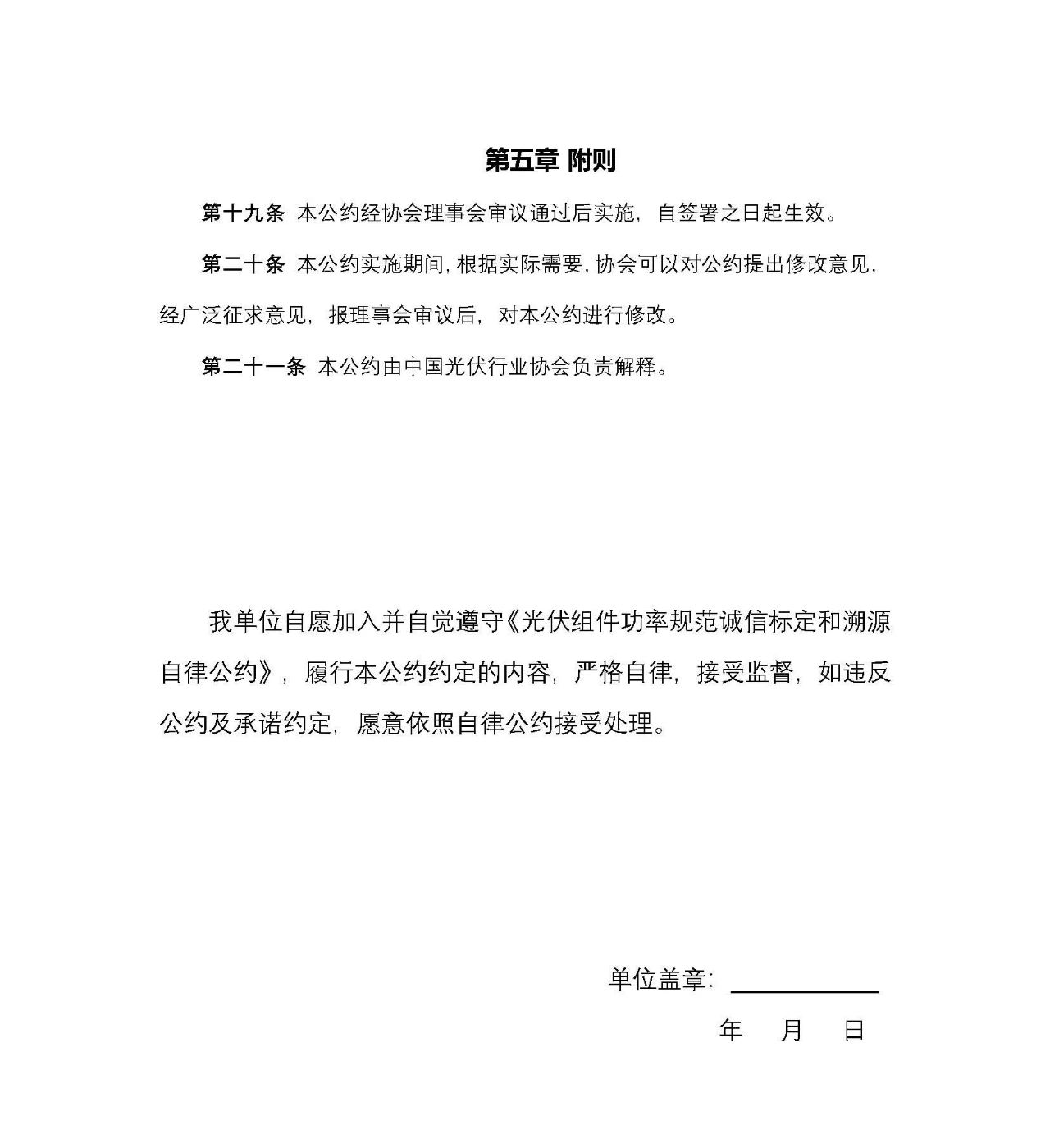 目前,中國光伏行業(yè)協(xié)會(huì)已組織40余家光伏企事業(yè)單位簽署了《自律公約》,涵蓋國內(nèi)骨干光伏組件企業(yè)、第三方檢測機(jī)構(gòu)、認(rèn)證計(jì)量機(jī)構(gòu)等多個(gè)環(huán)節(jié),后續(xù)還將組織更多單位參與簽約。