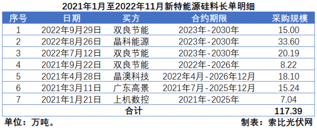 新特能源簽署7筆長(zhǎng)單,規(guī)模合計(jì)117.39萬(wàn)噸。