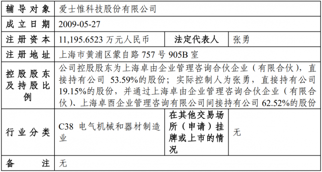 12月26日,中國證監(jiān)會官網顯示,愛士惟科技股份有限公司已完成首次公開發(fā)行股票并上市輔導備案,輔導機構為華泰證券。