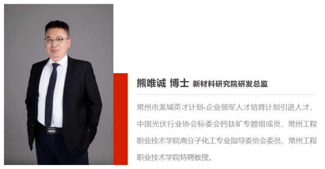 熊唯誠博士不僅在企業(yè)內(nèi)部發(fā)揮帶頭引領(lǐng)作用,還積極參加行業(yè)科研交流,推進(jìn)行業(yè)技術(shù)進(jìn)步。他受邀加入全國首個(gè)鈣鈦礦領(lǐng)域標(biāo)準(zhǔn)工作專題組,與專題組優(yōu)秀同仁攜手推動(dòng)鈣鈦礦光伏電池標(biāo)準(zhǔn)化制定,助力鈣鈦礦技術(shù)與產(chǎn)業(yè)化發(fā)展。其主持研發(fā)的相關(guān)課題產(chǎn)品分別獲得“江蘇省高新技術(shù)產(chǎn)品”和“常州市高新技術(shù)產(chǎn)品”,為光伏領(lǐng)域技術(shù)變革、降本增效貢獻(xiàn)一份力量。