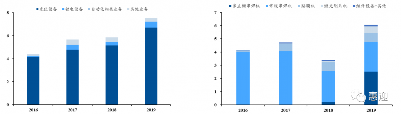 公司于 2009 年進(jìn)入光伏行業(yè),致力于光伏電池和光伏組件的自動(dòng)化成套設(shè)備的開(kāi)發(fā)設(shè)計(jì)、生產(chǎn)和銷售,于 2013 年首創(chuàng)國(guó)產(chǎn)電池片串焊機(jī),在 2017 年成功研發(fā)并量產(chǎn)多主柵串焊機(jī)和半片串焊機(jī)。公司光伏設(shè)備業(yè)務(wù)的政策聚焦于行業(yè)優(yōu)質(zhì)客戶,經(jīng)過(guò)多年來(lái)的積累,已經(jīng)形成較強(qiáng)的技術(shù)優(yōu)勢(shì)和品牌效應(yīng),設(shè)備受到隆基股份、晶科能源、中國(guó)節(jié)能等業(yè)內(nèi)一流廠商的青睞。
