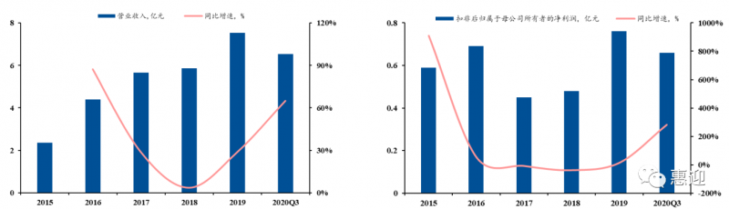 公司是光伏自動(dòng)化組件設(shè)備的頭部供應(yīng)商,下游客戶涵蓋國(guó)內(nèi)多家知名光伏組件企業(yè),同時(shí)積極布局新型組件設(shè)備,向壁壘較高的電池設(shè)備領(lǐng)域延伸,探索新增長(zhǎng)點(diǎn)。2015-2019 年,公司業(yè)績(jī)大幅增長(zhǎng),營(yíng)業(yè)收入從 2.92 億元增長(zhǎng)至 7.9 億元,CAGR 為 31.08%。截止 2020 年第三季度,公司的歸母凈利潤(rùn)為 0.65 億元,同比增長(zhǎng) 65%,超過(guò) 2019 年全年歸母凈利潤(rùn)。合同負(fù)債已達(dá) 3.71 億元,為 2021 年業(yè)績(jī)奠定良好基礎(chǔ)。2019 年,光伏組件自動(dòng)化生產(chǎn)線作為公司的主營(yíng)業(yè)務(wù),占總營(yíng)收的 93.11%,輔之以串焊機(jī)、層壓機(jī)等價(jià)值量較高的單機(jī)設(shè)備。