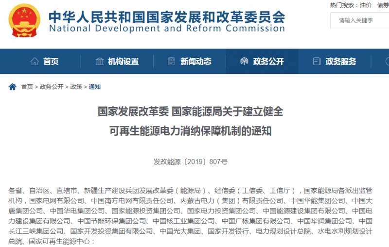 2019年5月,國家發(fā)改委、國家能源局印發(fā)《關(guān)于建立健全可再生能源電力消納保障機(jī)制的通知》(發(fā)改能源〔2019] 807號),提出綠證作為市場主體完成消納責(zé)任權(quán)重的補(bǔ)充方式。