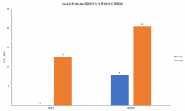 營運壓力的陡增,也迫使企業(yè)提高借貸規(guī)模。截至2022Q3,福斯特的短期借款規(guī)模達到創(chuàng)紀(jì)錄的12.59億元,要知道,自上市以來,公司的短期借款最高不超過2000萬。而海優(yōu)新材的短期借款規(guī)模更是達到了20.48億元,相比于2021年全年提高160%。受此影響,兩者的資產(chǎn)負債率分別達到23.43%和59.14%,相比于2021年的10.94%和37.21%分別提升114%和59%。