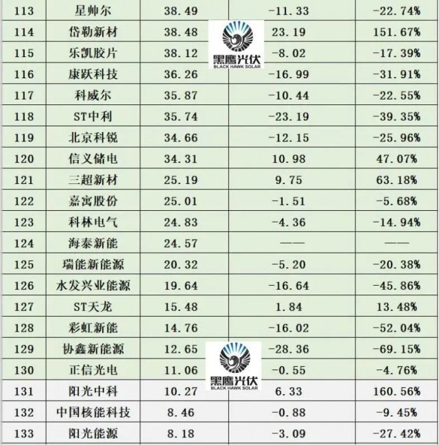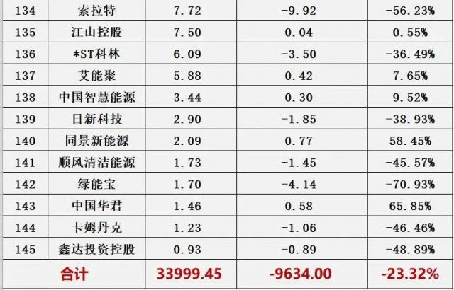 黑鷹團隊統(tǒng)計發(fā)現(xiàn),相比2022年1月1日市值,截止12月23日(本周五)收盤,145家光伏上市公司總市值33999億元,若剔除十家上市不足一年的上市企業(yè),光伏總市值較年初下降了9634億元,“蒸發(fā)”近萬億,降幅達23.32%。