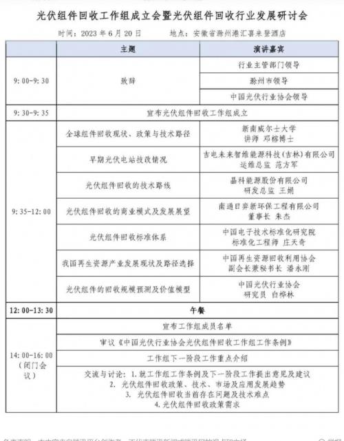 6月7日,中國光伏行業(yè)協會發(fā)布通知,協會將于2023年6月20日在安徽滁州召開“光伏組件回收發(fā)展研討會”,從光伏組件回收的現狀、技術路徑、規(guī)模預測、價值與經濟性分析、商業(yè)模式等維度,與研究機構、行業(yè)組織、回收處理企業(yè)、電站投資與運營企業(yè)等業(yè)內嘉賓共同分析探討光伏組件回收發(fā)展等焦點問題。