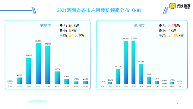 以下是2021年河南省戶用裝機(jī)頻率分布圖,最大單戶裝機(jī)在駐馬店市,為30.4MW。