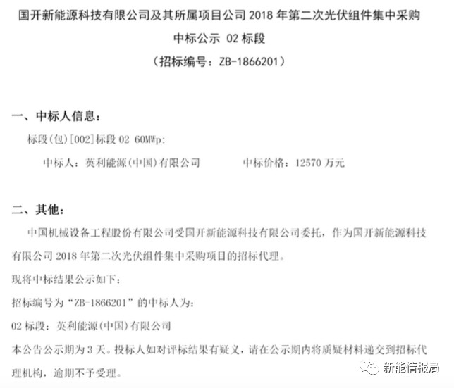7月28日,國開新能源科技有限公司及其所屬項目公司發(fā)布2018年第二次光伏組件集中采購中標(biāo)公示。