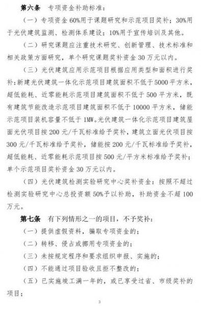 政策中指出,專項(xiàng)資金支持項(xiàng)目范圍為光伏建筑應(yīng)用研究課題,光伏建筑應(yīng)用示范項(xiàng)目建設(shè)(包括光伏建筑一體化應(yīng)用項(xiàng)目建設(shè)、超低能耗建筑及近零能耗建筑建設(shè)、既有建筑節(jié)能改造及儲能項(xiàng)目等),光伏建筑監(jiān)測、檢測體系建設(shè),光伏建筑應(yīng)用宣傳及技術(shù)培訓(xùn)等。