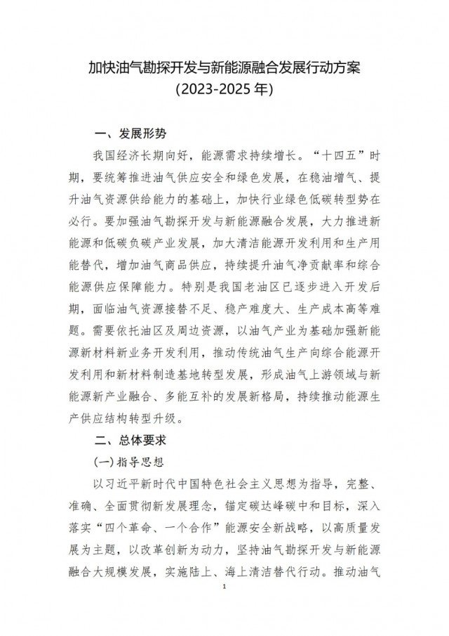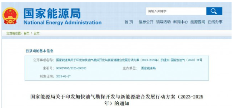 國家能源局關(guān)于印發(fā)加快油氣勘探開發(fā)與新能源融合發(fā)展行動方案(2023-2025年)的通知