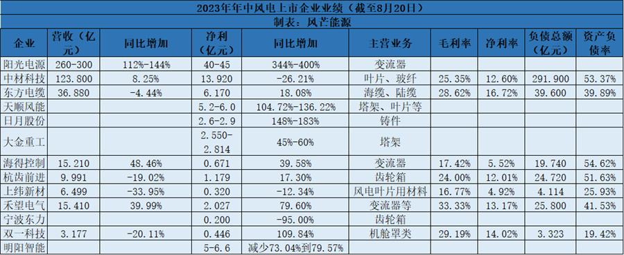 近日,明陽(yáng)智能、中材科技、天順風(fēng)能等13家風(fēng)電企業(yè)發(fā)布業(yè)績(jī)中報(bào)。從已公布業(yè)績(jī)來(lái)看,風(fēng)電產(chǎn)業(yè)鏈盈利繼續(xù)冷熱不均。