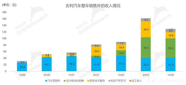 2023 年上半年,公司整車銷售業(yè)務(wù)實(shí)現(xiàn)營收 603 億元,同比增 23%,超出市場預(yù)期 10.8%。在銷量(不含領(lǐng)克、睿藍(lán))同比增長 12% 的但銷量數(shù)據(jù)市場已知的情況下,單車 ASP 超出市場預(yù)期 13.3%,帶動(dòng)整車銷售業(yè)務(wù)大幅度超預(yù)期。