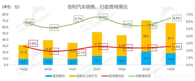 極氪系列上半年新開了 24 家直營門店極氪空間,目前直營門店超過 300 家,覆蓋 75 城。整體的渠道梳理與新建,使整體銷售費(fèi)用同比拉升了 44%。