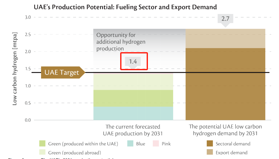 圖注:2031年阿聯(lián)酋的氫能產(chǎn)能預(yù)測和需求預(yù)測
