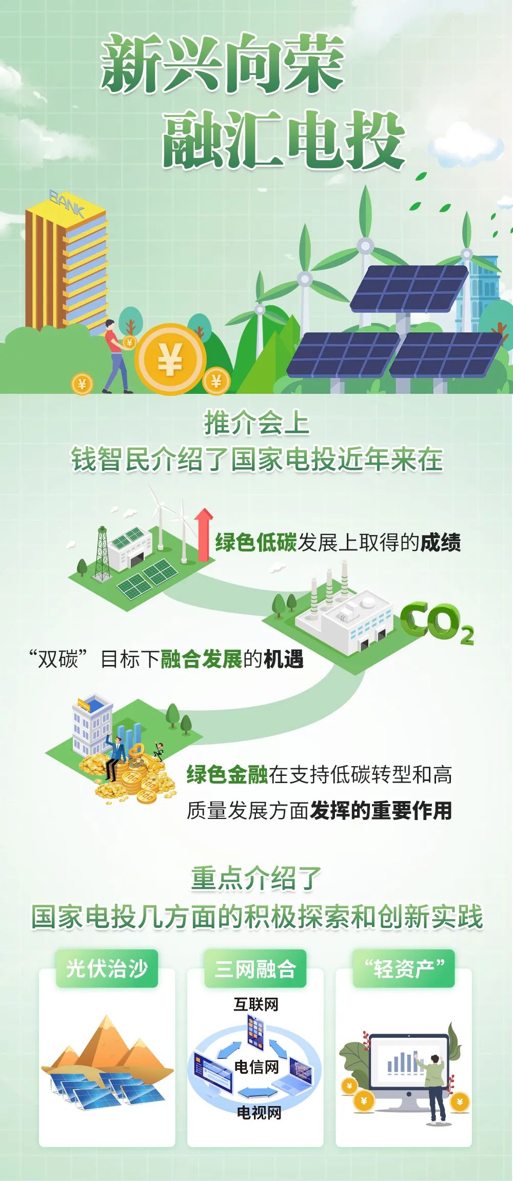 “錢智民介紹道,國家電投作為我國唯一擁有核電、火電、水電、風(fēng)電、光伏發(fā)電、生物質(zhì)發(fā)電等全部發(fā)電類型的能源企業(yè),深入踐行習(xí)近平總書記關(guān)于清潔低碳發(fā)展的重要指示批示精神,以“創(chuàng)造綠色價值”為使命,以“綠色 創(chuàng)新 融合,真信 真干 真成”為核心價值觀,制定了面向新時代的“2035一流戰(zhàn)略”,在綠色低碳發(fā)展上取得了顯著成效。目前,國家電投裝機(jī)總規(guī)模已突破2億千瓦,新能源發(fā)電裝機(jī)量、可再生能源發(fā)電裝機(jī)量、清潔能源發(fā)電裝機(jī)量均居世界第一。他表示,在全球能源結(jié)構(gòu)向非化石能源轉(zhuǎn)型的進(jìn)程中,把握“風(fēng)光無限”的未來機(jī)遇取決于新能源技術(shù)創(chuàng)新,更取決于金融。我們愿與金融企業(yè)共同發(fā)力,為實現(xiàn)中國能源清潔低碳轉(zhuǎn)型貢獻(xiàn)更大力量。”