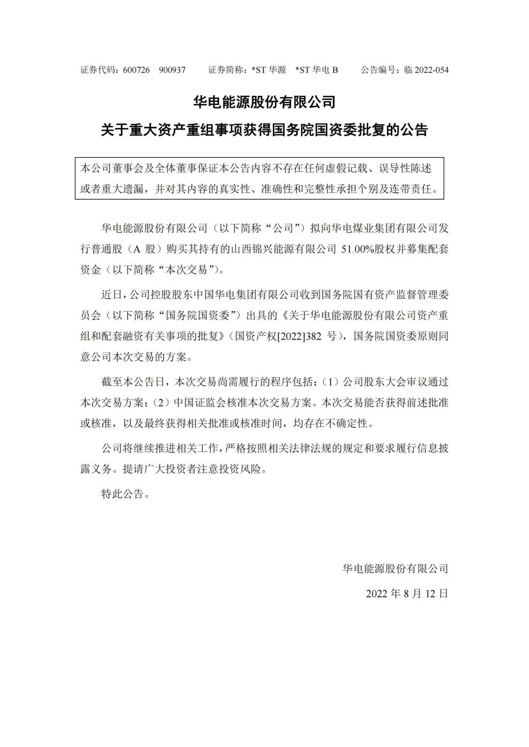華電能源也發(fā)布公告,確認重大資產(chǎn)重組事項獲得國務(wù)院國資委批復。