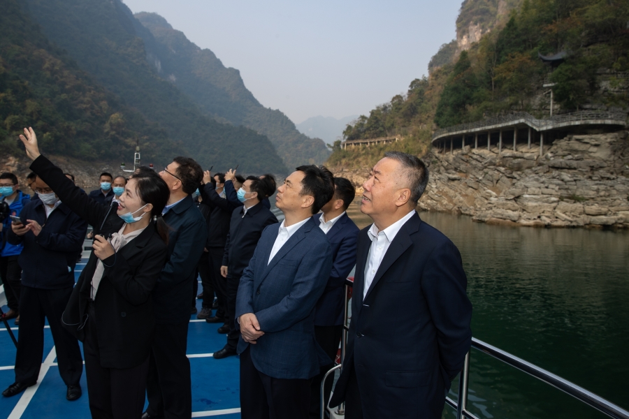 雷鳴山乘船考察隔河巖電站庫區(qū),調(diào)研清江水系連通及生態(tài)修復(fù)工程有關(guān)情況