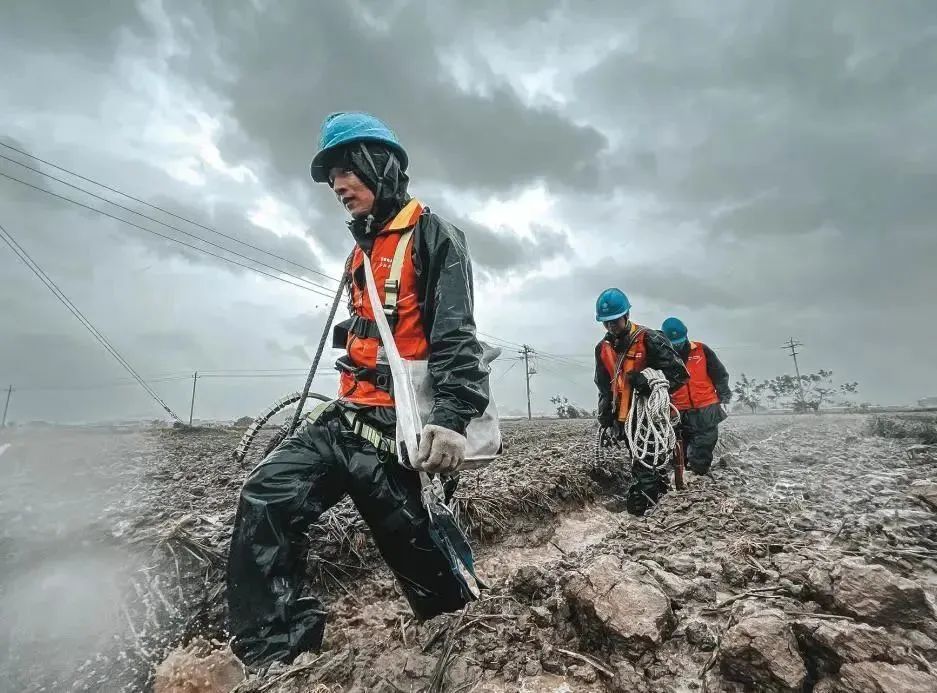 臺(tái)風(fēng)“梅花”在浙江舟山普陀沿海登陸后,國(guó)網(wǎng)浙江電力員工穿過泥濘的田地前往故障點(diǎn)開展搶修。程夢(mèng)玨 攝