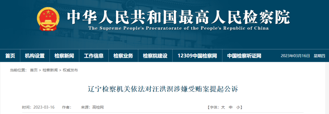 遼寧省能源局原局長(zhǎng)汪洪溟被提起公訴