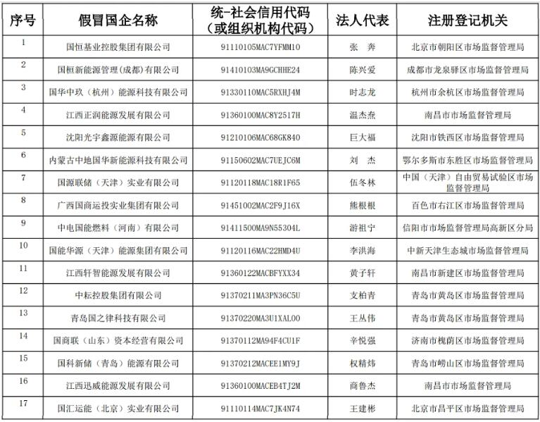 近期,有不法分子通過偽造相關(guān)材料等方式,將企業(yè)注冊(cè)為我集團(tuán)下屬子公司,以我集團(tuán)下屬子公司名義開展業(yè)務(wù)。經(jīng)我集團(tuán)核實(shí),以下公司及其下設(shè)各級(jí)子公司均為假冒國(guó)企,與我集團(tuán)無任何隸屬或股權(quán)關(guān)系,也不存在任何投資、合作、業(yè)務(wù)等關(guān)系,其一切行為均與我集團(tuán)無關(guān)。請(qǐng)社會(huì)各界提高警惕,注意防范風(fēng)險(xiǎn),如發(fā)現(xiàn)其違法犯罪行為,請(qǐng)盡快到公安機(jī)關(guān)報(bào)案。