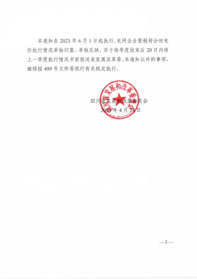 4月24日,四川省發(fā)展和改革委員會(huì)發(fā)布《關(guān)于調(diào)整我省分時(shí)電價(jià)機(jī)制的通知》,對峰平谷時(shí)段、大型商業(yè)用戶電價(jià)機(jī)制調(diào)整進(jìn)行了說明,將在6月1日起執(zhí)行,詳情如下: