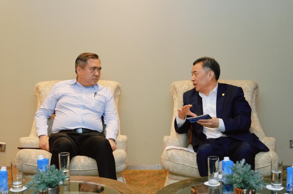 陸兆福對(duì)中國(guó)能建代表團(tuán)一行到訪表示歡迎,并簡(jiǎn)要介紹了馬來西亞新能源及交通系統(tǒng)發(fā)展情況。他表示,馬來西亞在“2030愿景”指導(dǎo)下,積極推動(dòng)能源結(jié)構(gòu)轉(zhuǎn)型,加快風(fēng)、光、儲(chǔ)等綠色清潔能源發(fā)展,探索更多“新能源+”場(chǎng)景和應(yīng)用。目前,正在通過加快軌道、航空和航運(yùn)基礎(chǔ)設(shè)施建設(shè),打造綠色交通系統(tǒng),推動(dòng)交通行業(yè)綠色低碳發(fā)展。中國(guó)能建擁有豐富的項(xiàng)目建設(shè)經(jīng)驗(yàn)和強(qiáng)大的技術(shù)實(shí)力,雙方合作空間廣闊、潛力巨大。希望中國(guó)能建充分發(fā)揮綜合交通投建營(yíng)一體化優(yōu)勢(shì),開發(fā)水陸空等交通領(lǐng)域與能源融合的更多應(yīng)用,在風(fēng)光新能源、綠氫綠氨綠甲醇等方面開展全方位務(wù)實(shí)合作,提供更有價(jià)值、更具整體競(jìng)爭(zhēng)力的系統(tǒng)化解決方案。希望雙方進(jìn)一步加強(qiáng)合作交流,共同推動(dòng)馬來西亞新能源發(fā)展。
