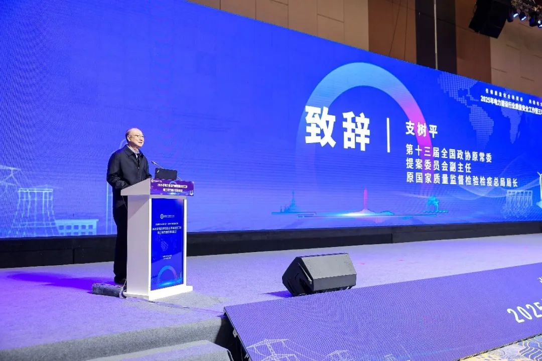 第十三屆全國(guó)政協(xié)原常委、提案委員會(huì)副主任、原國(guó)家質(zhì)量監(jiān)督檢驗(yàn)檢疫總局局長(zhǎng)支樹(shù)平,中國(guó)工程院院士、山東省原副省長(zhǎng)、山東省科協(xié)主席凌文,中國(guó)南方電網(wǎng)有限責(zé)任公司總工程師汪際峰,中國(guó)電力建設(shè)企業(yè)協(xié)會(huì)會(huì)長(zhǎng)王思強(qiáng)出席會(huì)議并致辭。國(guó)家能源局電力安全監(jiān)管司司長(zhǎng)汪擁軍,中國(guó)電力建設(shè)企業(yè)協(xié)會(huì)總工程師兼副秘書長(zhǎng)白林杰發(fā)表主旨演講。國(guó)家能源集團(tuán)原副總經(jīng)理馮樹(shù)臣,中國(guó)電力建設(shè)企業(yè)協(xié)會(huì)副會(huì)長(zhǎng)、北京能源集團(tuán)副總經(jīng)理張鳳陽(yáng),中國(guó)電力建設(shè)企業(yè)協(xié)會(huì)副會(huì)長(zhǎng)、內(nèi)蒙古能源集團(tuán)副總經(jīng)理賀彪,中國(guó)電力建設(shè)企業(yè)協(xié)會(huì)駐會(huì)副會(huì)長(zhǎng)尹松,中國(guó)電力建設(shè)企業(yè)協(xié)會(huì)秘書長(zhǎng)?;燮?,中國(guó)電力建設(shè)企業(yè)協(xié)會(huì)總經(jīng)濟(jì)師王彥文、中國(guó)電力建設(shè)企業(yè)協(xié)會(huì)副總工程師石玉成及來(lái)自中國(guó)電力建設(shè)企業(yè)協(xié)會(huì)理事單位、常務(wù)理事單位、全國(guó)各地的電力建設(shè)企業(yè)、科研機(jī)構(gòu)、高等院校等共計(jì)4200余名代表參加會(huì)議。會(huì)議由中國(guó)電力建設(shè)企業(yè)協(xié)會(huì)常務(wù)副會(huì)長(zhǎng)王軍主持。