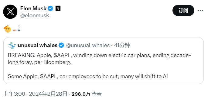 蘋果被曝已于周二宣布取消電動車項目 2000名員工當(dāng)場驚呆