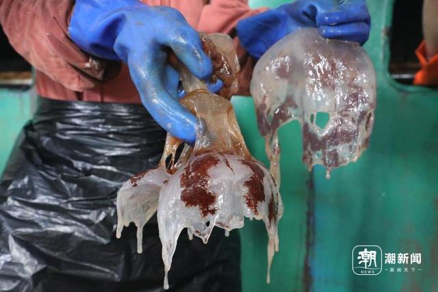 徒手清理海蜇。