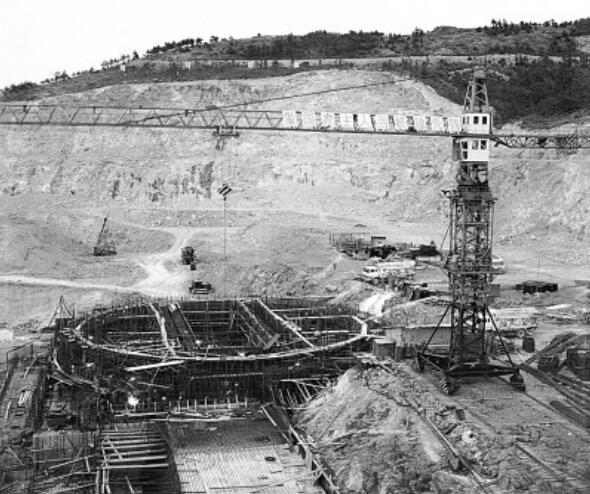 20世紀(jì)80年代建設(shè)中的秦山核電站 張錄攝/光明圖片
