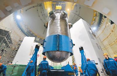 1月28日,華龍一號全球首堆、中核集團(tuán)福清核電5號機(jī)組反應(yīng)堆壓力容器順利吊裝。林善傳攝(新華社發(fā))