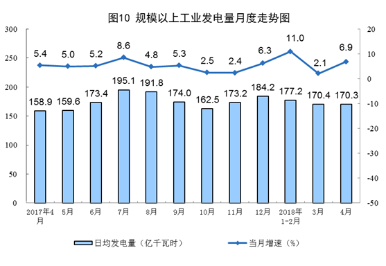 4月份,規(guī)模以上工業(yè)原煤、天然氣、電力生產(chǎn)加快,原油生產(chǎn)保持平穩(wěn),原油加工量增長(zhǎng)較快。