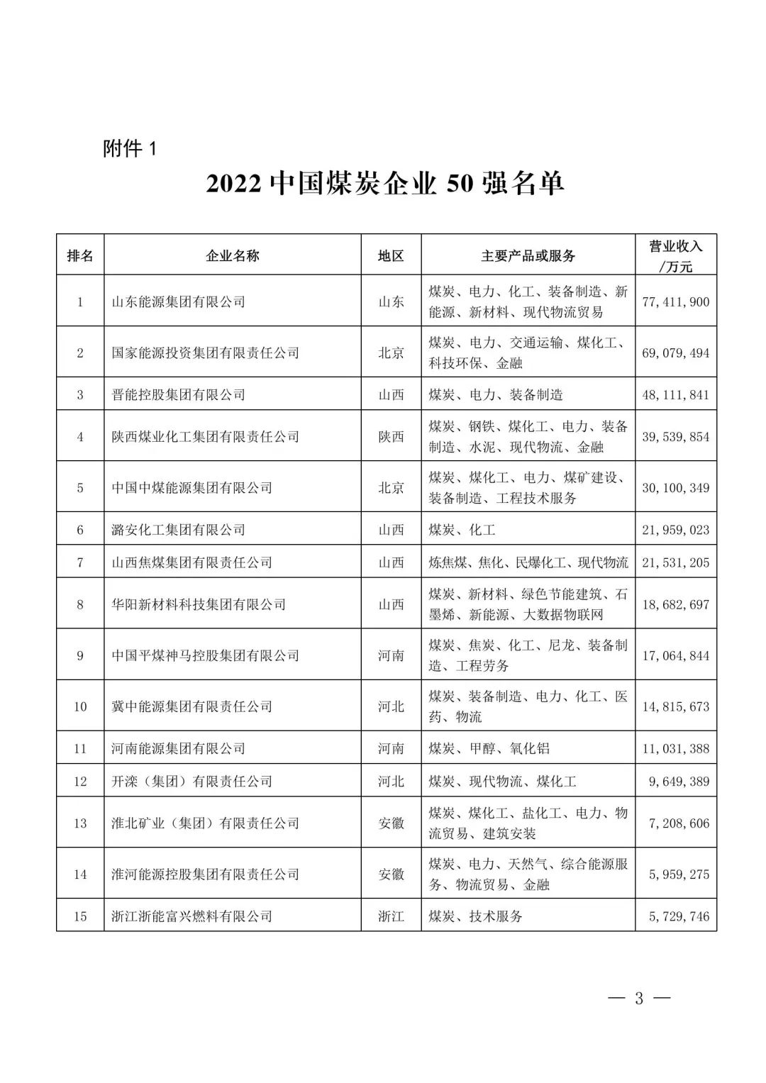8月5日,中國煤炭工業(yè)協(xié)會(huì)發(fā)布2022中國煤炭企業(yè)50強(qiáng)和煤炭產(chǎn)量千萬噸以上企業(yè)名單。排名先后依據(jù)營業(yè)收入而非煤炭產(chǎn)量。