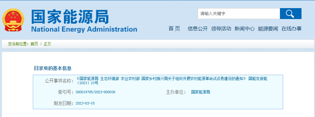 《國家能源局 生態(tài)環(huán)境部 農(nóng)業(yè)農(nóng)村部 國家鄉(xiāng)村振興局關于組織開展農(nóng)村能源革命試點縣建設的通知》