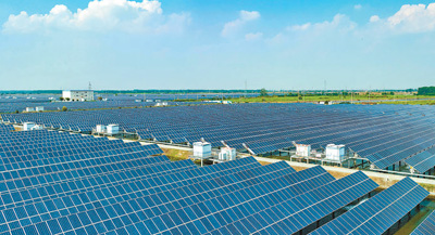 江蘇省興化市,千垛鎮(zhèn)連片的光伏發(fā)電板映襯著藍(lán)天白云,成為一道獨(dú)特風(fēng)景。